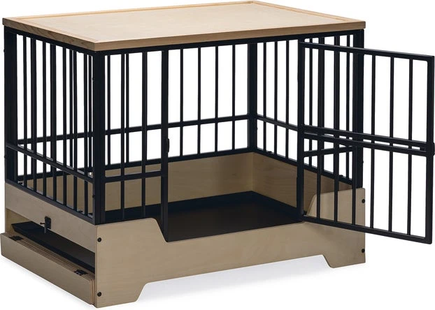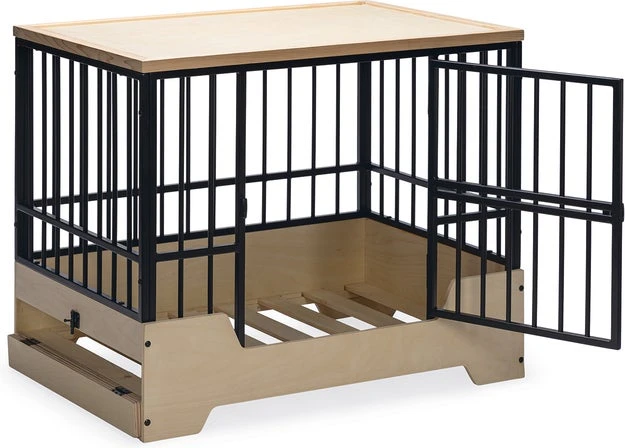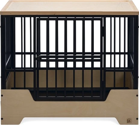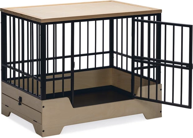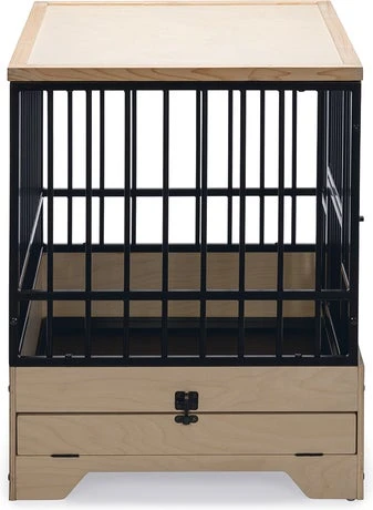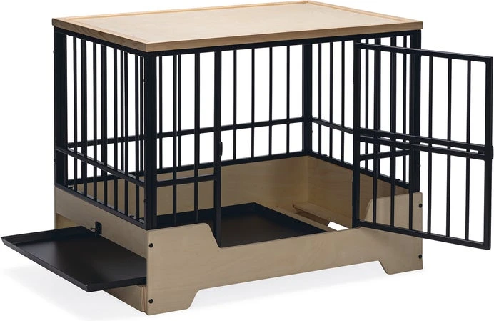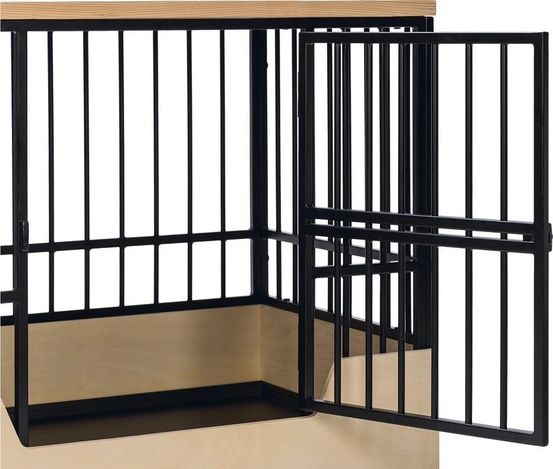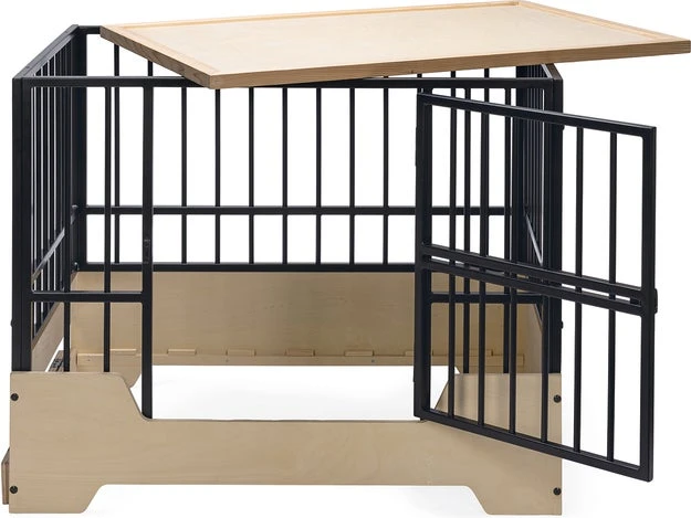 Geef jouw hond een prachtige eigen veilige omgeving die ook nog eens mooi staat binnen jouw interieur met deze Designed by Lotte Hondenbench Quirine. De bench heeft een stevige metalen frame en een licht houten onder- en bovenkant. Daarnaast is de bench voorzien van een verhoogde instap en een deur aan de voorkant met een draaisluiting.