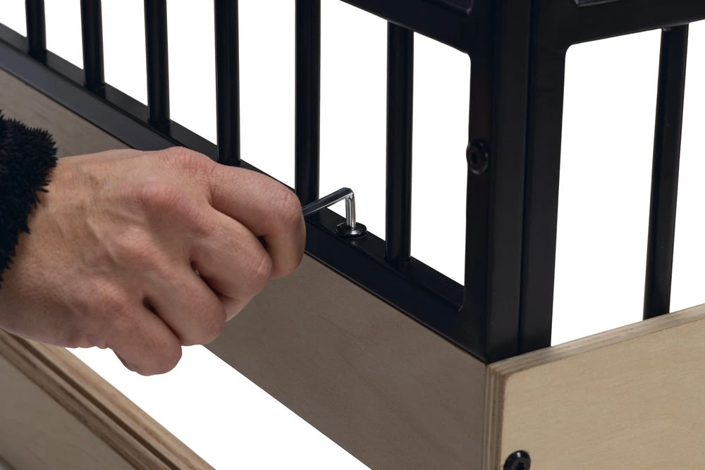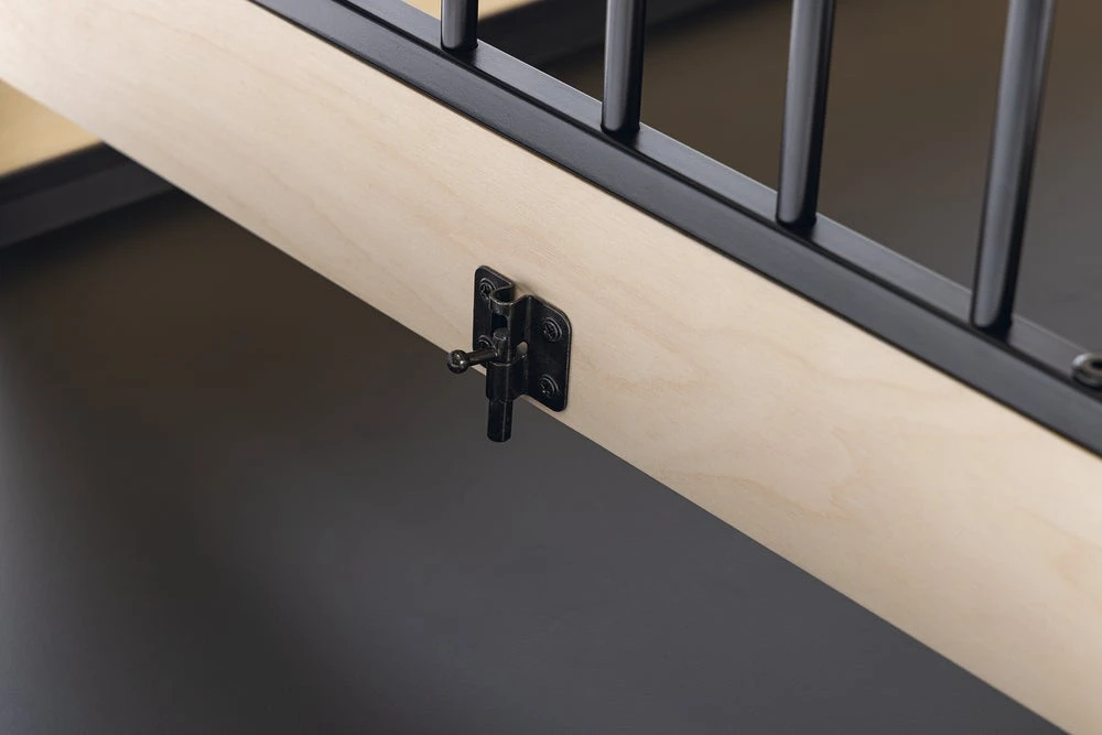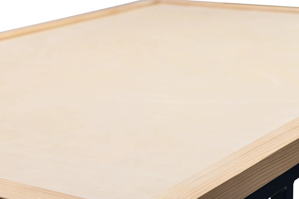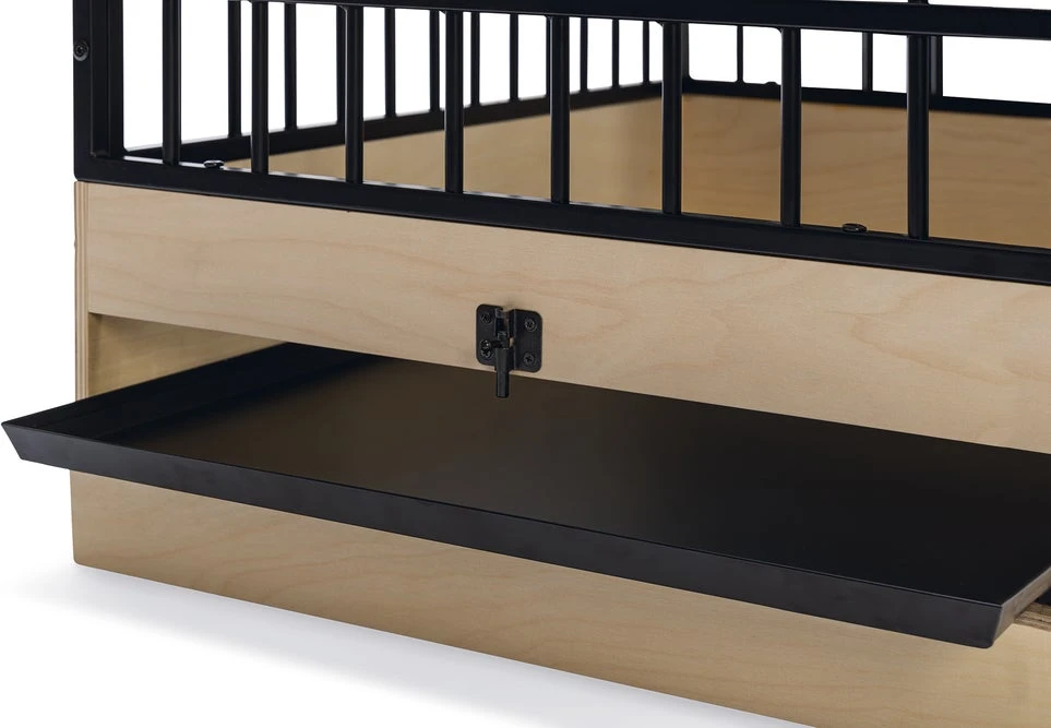 Bovendien beschikt de bench over een zwarte, uitneembare lade, gemaakt van metaal. Deze lade zit verstopt achter het houten klapframe. Door toevoeging van de lade, maak je de bench schoon in een handomdraai.