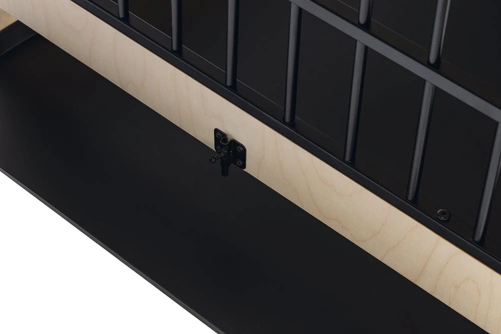 Bovendien beschikt de bench over een zwarte, uitneembare lade, gemaakt van metaal. Deze lade zit verstopt achter het houten klapframe. Door toevoeging van de lade, maak je de bench schoon in een handomdraai.