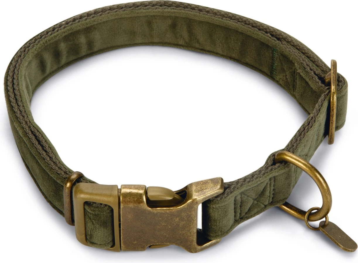 De hondenhalsband Velura van Designed by Lotte is modieus, stijlvol en helemaal van deze tijd. De groene halsband is uitgevoerd in de trendy stof fluweel, wat super zacht aanvoelt. Fluweel is ook bekend onder de naam velvet. De velvet hondenhalsband heeft een hele luxe uitstraling, wat waarschijnlijk heel goed past bij het karakter van jouw hond. De Velura is verstelbaar en voorzien van een veiligheidssluiting. Zodra het bandje onder druk komt te staan zal de sluiting open schieten.