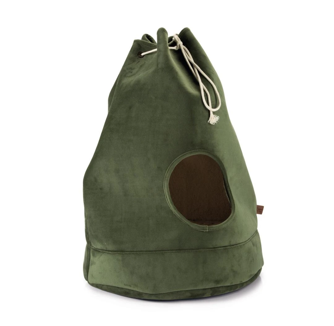 Dit kattenhuisje doet je misschien denken aan een tas, die je aan de bovenkant dicht maakt met een touwtje. Door het gat aan de voorkant kan jouw kat zijn huisje eenvoudig betreden. Het lekkere kussentje in het huisje, zorgt ervoor dat jouw kat hier heerlijk in kan leggen. Het kussentje is machinewasbaar op 30 graden.
