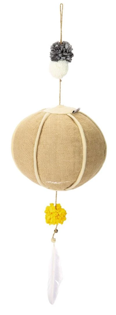De Designed by Lotte Ripa speelbal is perfect voor jou als je op zoek ben naar mooi en vernieuwend speelgoed voor je kat! Deze textielen speelbal kan op worden gehangen door middel van de lus aan de bovenkant. Jouw kat zal proberen het veertje of de bal te pakken te krijgen, maar het speeltje zal iedere keer wegzwieren. Hierdoor blijft het spelletje aantrekkelijk voor jouw kat en is het voor jou heel leuk om ernaar te kijken. Door de neutrale kleuren ziet het er ook nog eens mooi uit in ieder interieur.