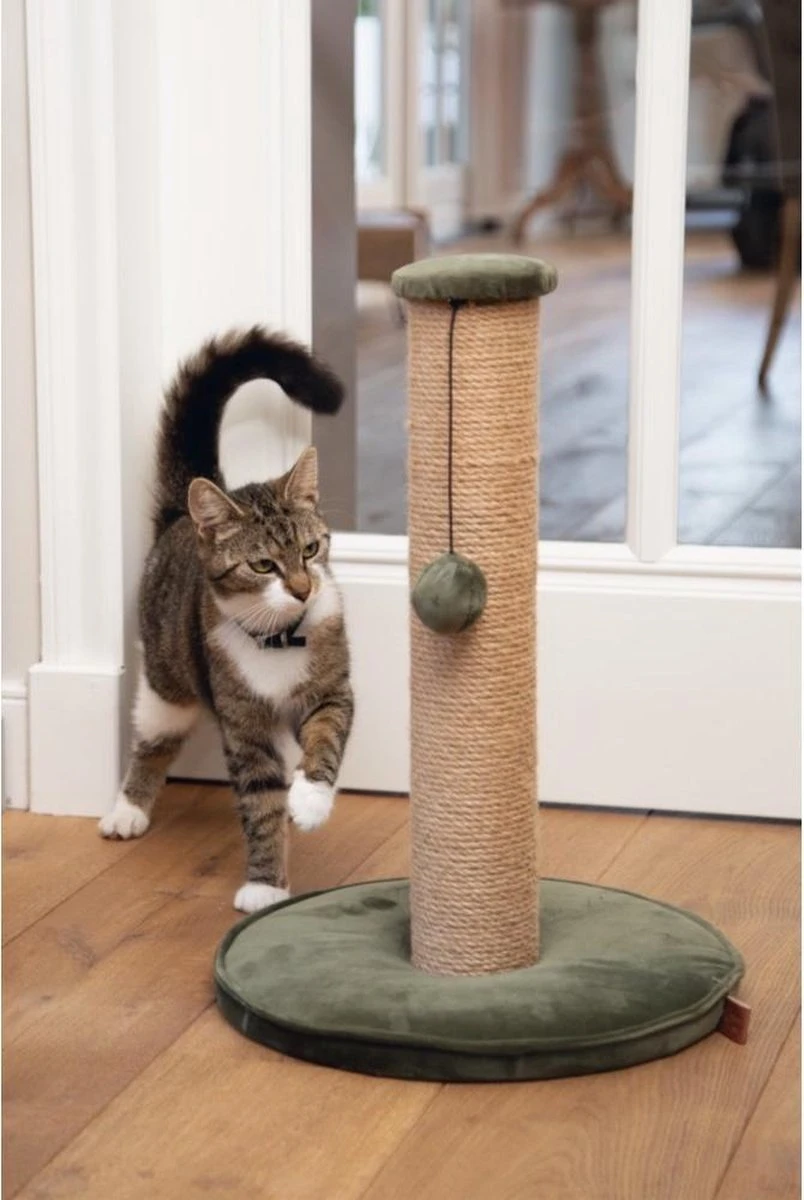 De Designed by Lotte Yenna krabpaal gaat mee met de laatste velvet trend. De krabpaal is voorzien van een sisal krabgedeelte, zodat jouw kat lekker zijn gang kan gaan met krabben. Het gedeelte bovenop de paal en de onderplaat, zijn voorzien van een velvet stof. Dit geeft de krabpaal een luxe uitstraling, waardoor het een echte eyecather wordt in huis. Inclusief een speelbolletje voor extra speelplezier. – Sisal krabpaal – Verkrijgbaar in 3 verschillende kleuren Afmeting: 35x35x50 cm
